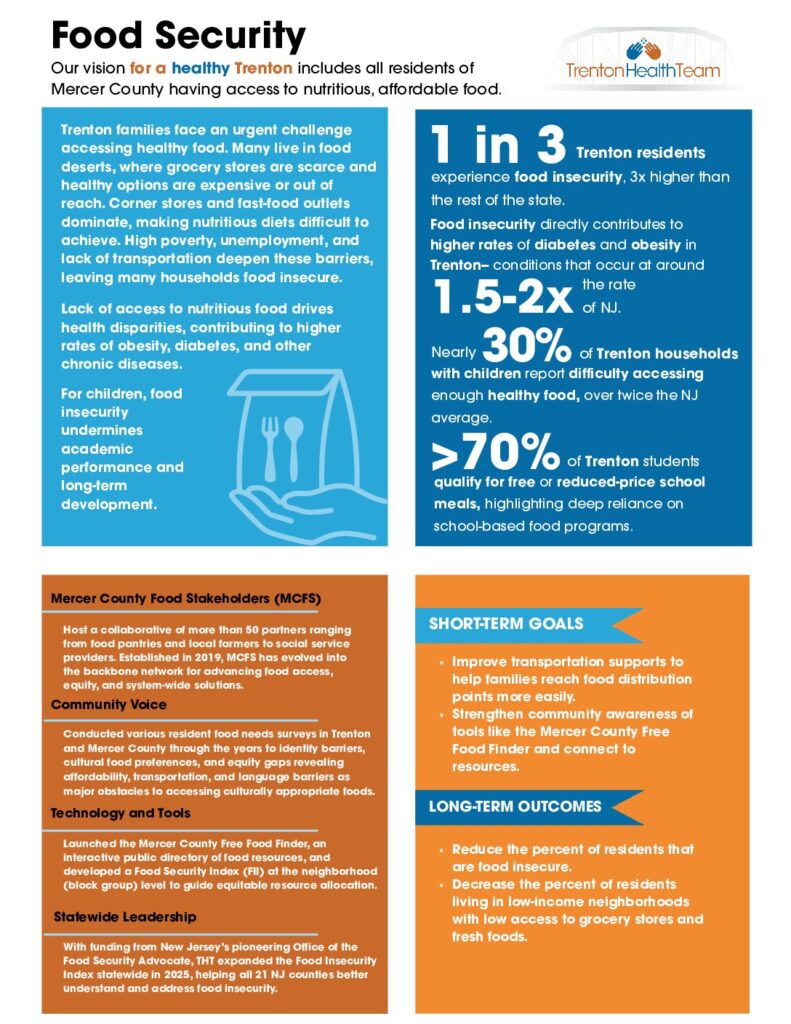 Nuestra visión para un saludable Trenton incluye a todos los residentes del condado de Mercer que tienen acceso a alimentos nutritivos y asequibles. Con el aumento de la necesidad de alimentos en todo el condado de Mercer, Trenton Health Team, junto con sus diversos socios, ha desarrollado una aplicación web gratuita que ayuda a aquellos que necesitan recursos alimentarios gratuitos.